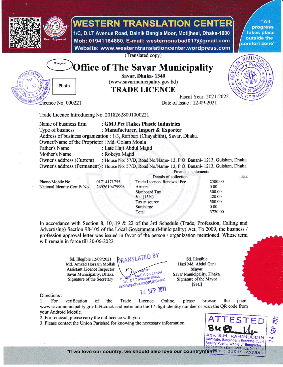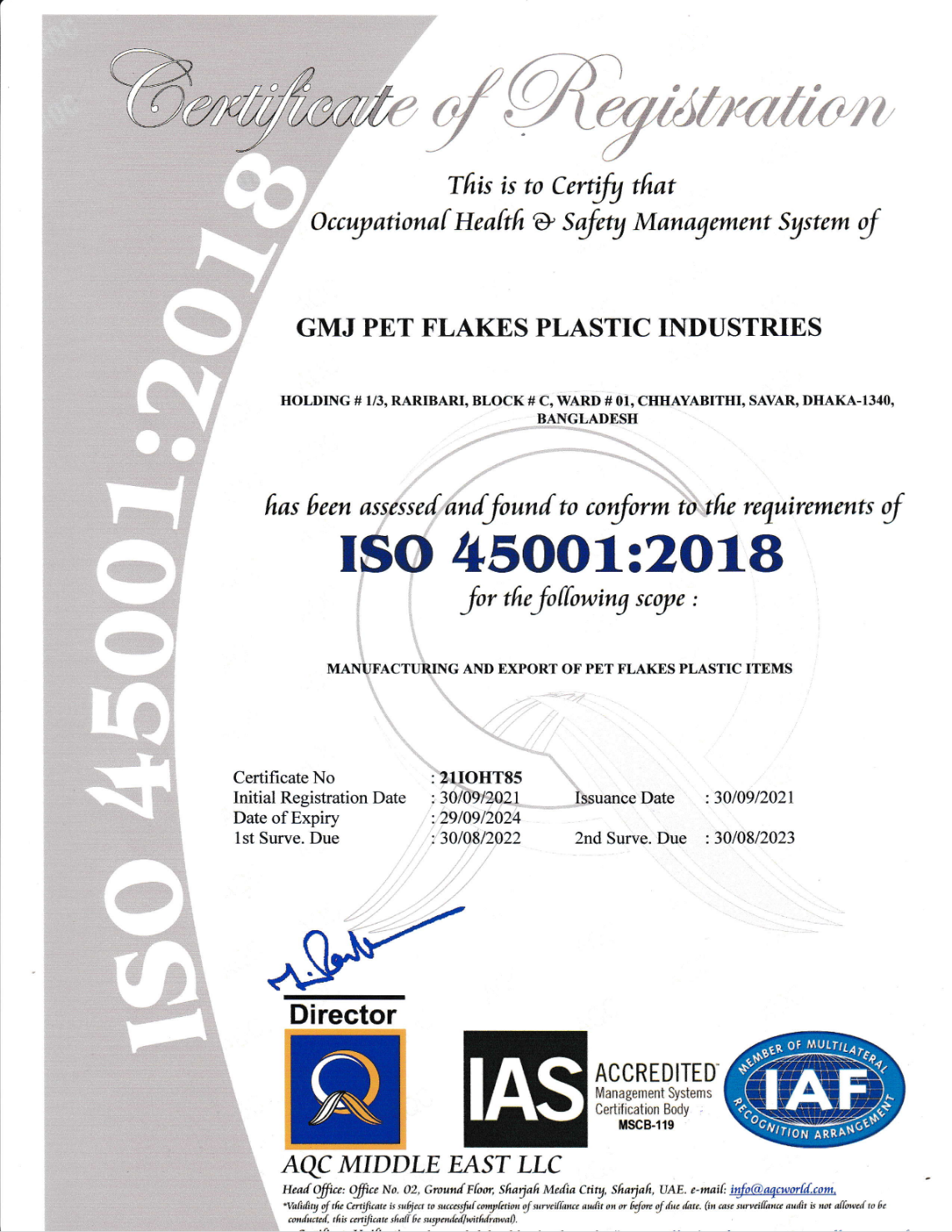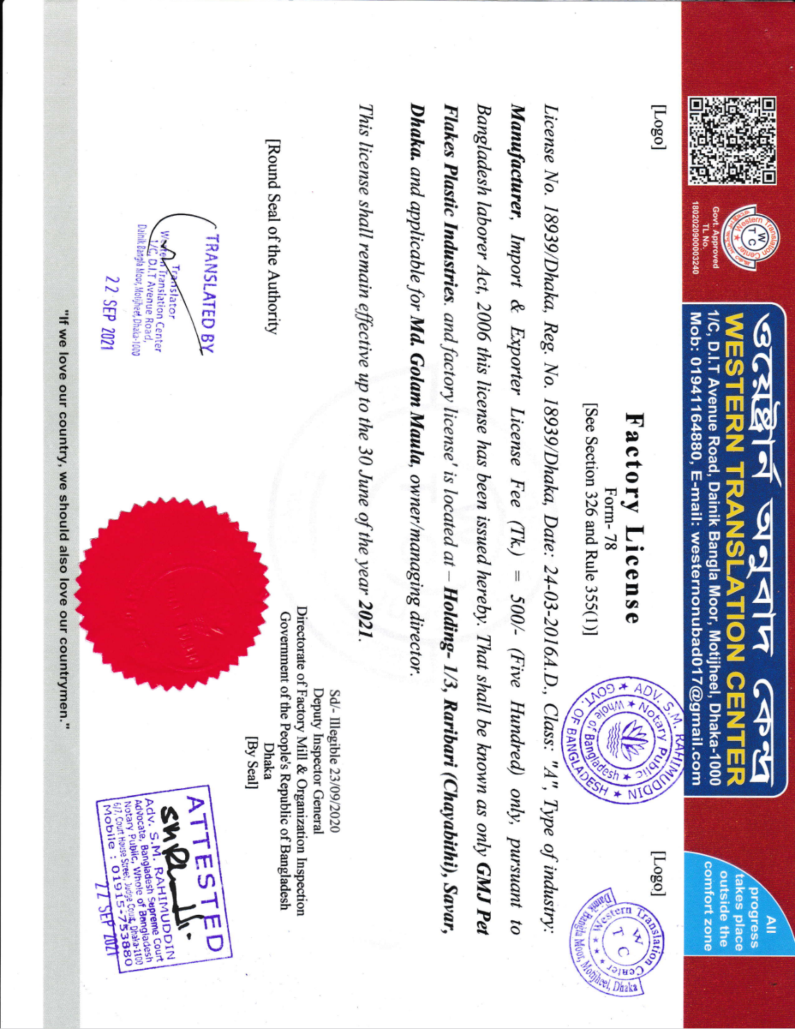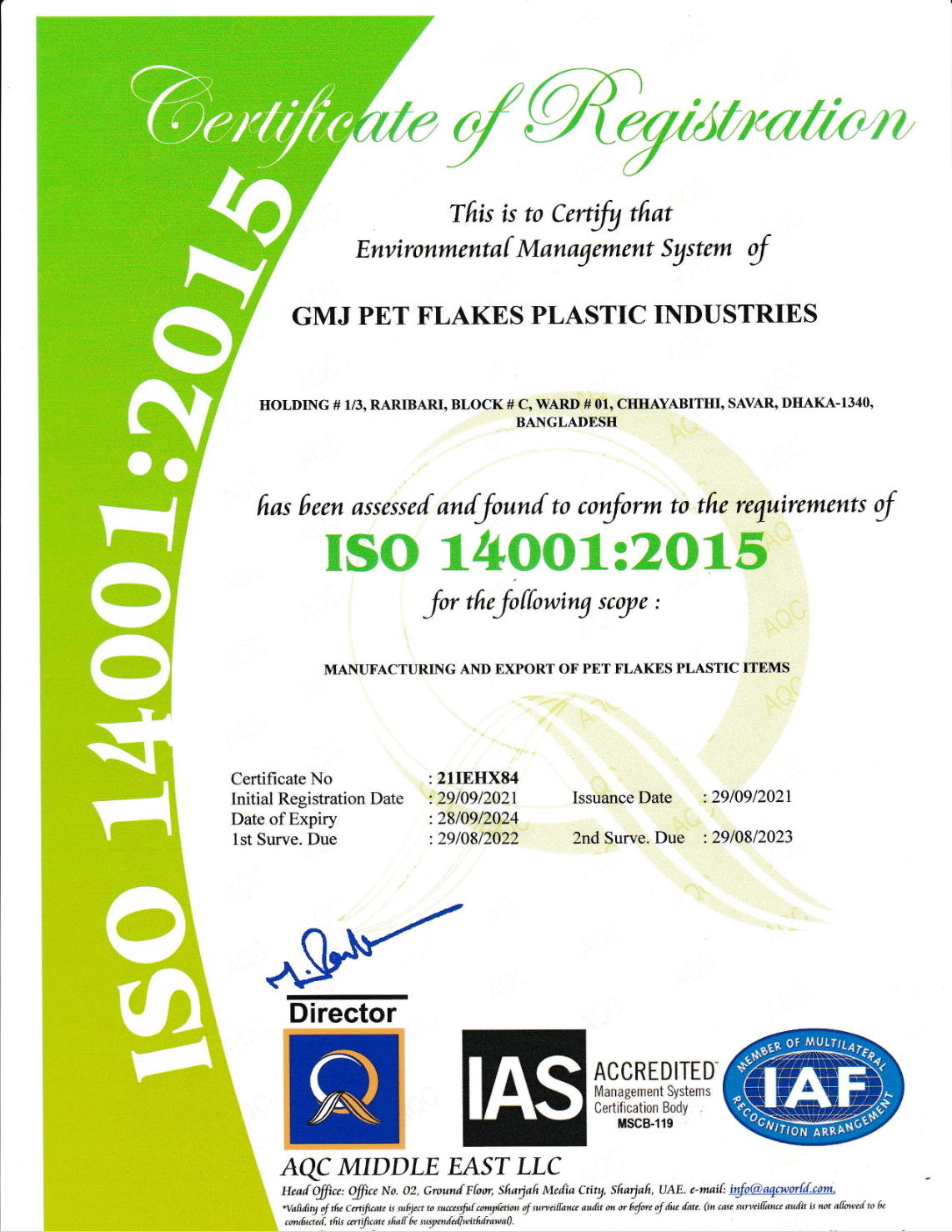 ISO ISO ISO ISO Others TRADE LICENCE Ertrofment Certfficate Expoft Registration Certificate (ERC) Value Added Tax Registration Certificate Best Recycled Plastic Exporter Factory License Best Exporter 2021